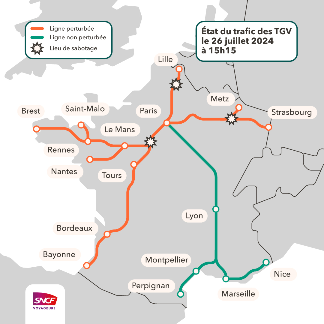 La SNCF a subit plusieurs sabotages dans la nuit de jeudi à vendredi. La veille d’un départ en congé et de la cérémonie d’ouverture des Jeux Olympiques de Paris 2024. La destruction de transformateurs a bloqué le trafic des TGV sur les axes nord et ouest. La SNCF a activé son Plan de Continuité d’Activité (PCA) pour assurer un service en mode dégradé.