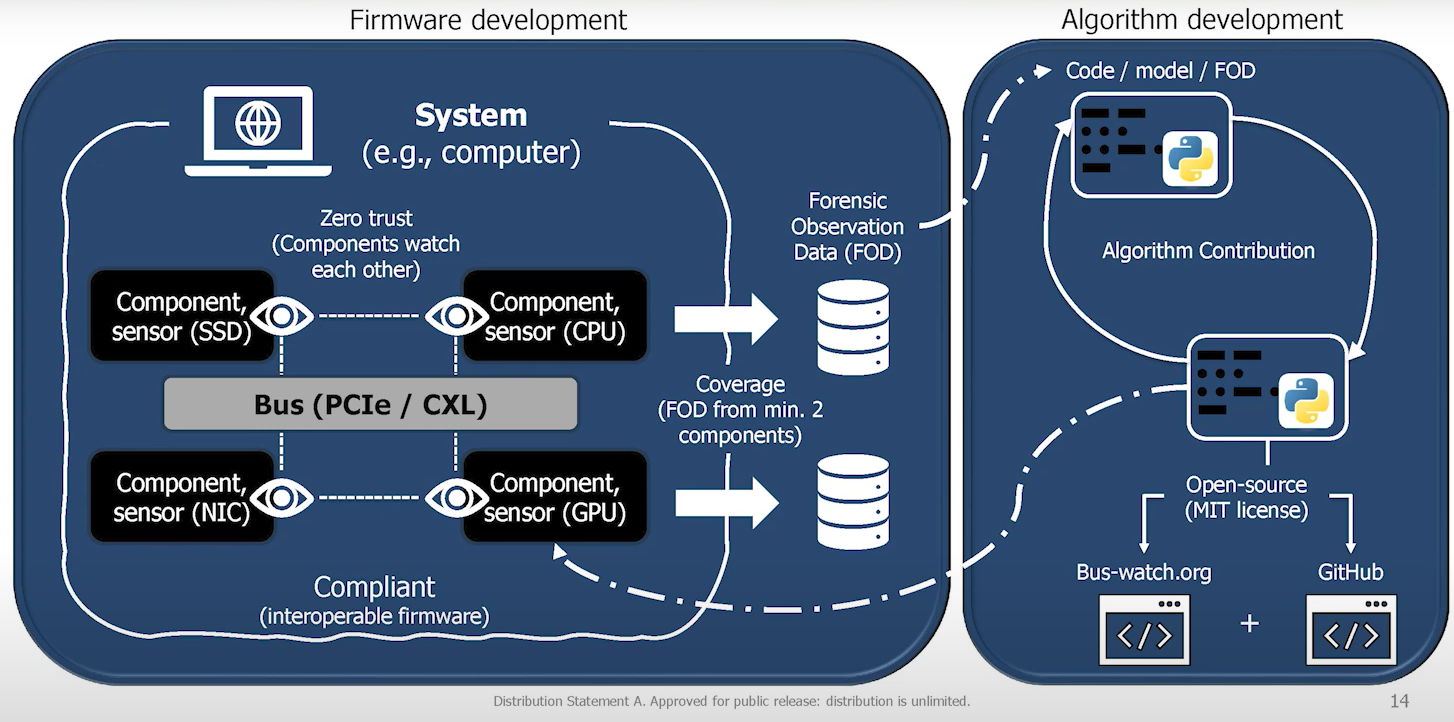 La DARPA a lancé le programme Red-C visant à développer un firmware "auto-réparateur" pour les systèmes informatiques basés sur des bus, tels que PCIe et CXL. Ce firmware intégrerait des capteurs forensiques permettant aux composants de détecter et de répondre en temps réel aux cyberattaques, tout en restaurant les données compromises. L'objectif est de créer une couche de sécurité distribuée au niveau du bus, offrant une surveillance interne plus efficace que les outils externes traditionnels. Cependant, des défis technologiques et d'adoption par l'industrie subsistent pour concrétiser cette vision.